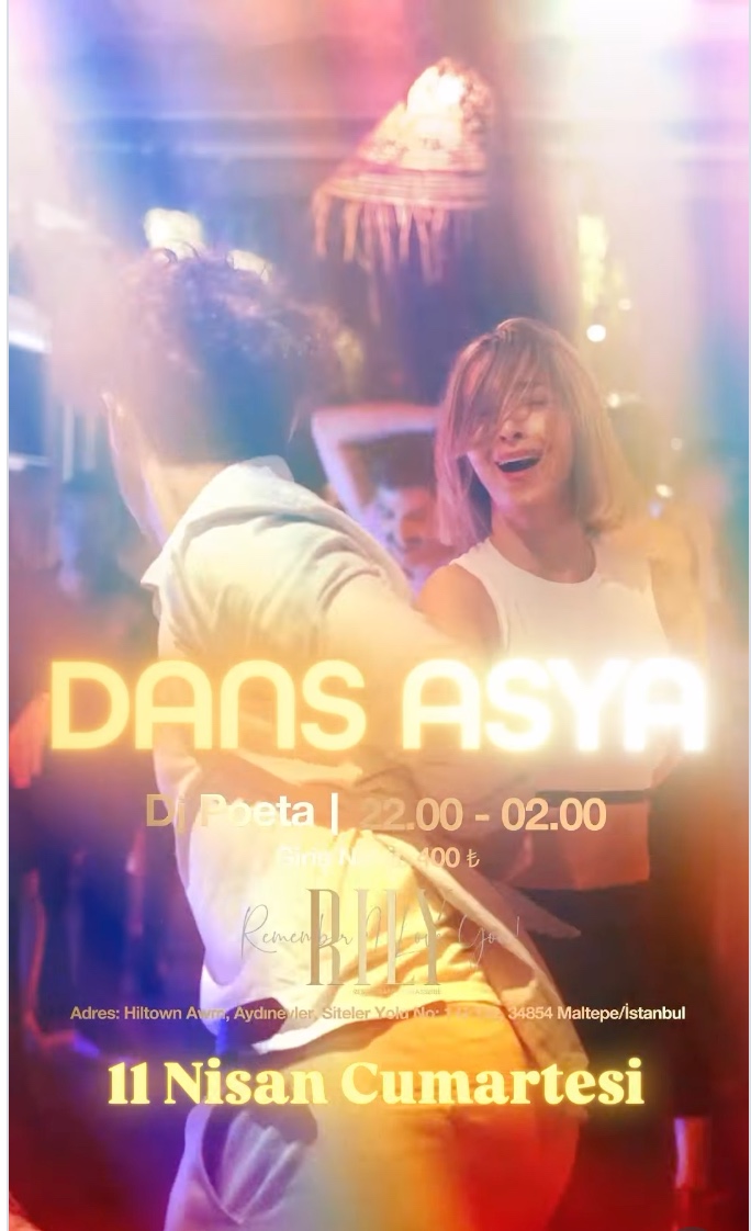 DANS ASYA LATİN NIGHT Efsane Bugün devam ediyor. DJ Pota’nın seçkileriyle, Anadolu Yakası’nın kalbinde unutulmaz bir Latin gecesi daha bizleri bekliyor. • Rily Brasserie - Hilltown AVM, Maltepe 11 Nisan 2026, CUMARTESI Kapı Açılışı: 22.00